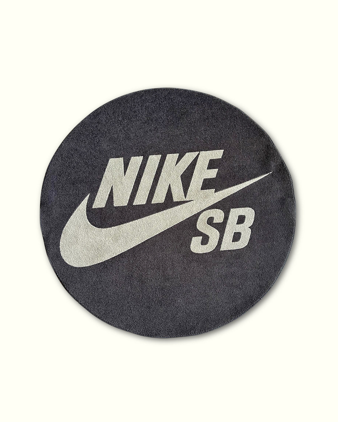 The Nike SB Store Promo Rug from 2003, was a Nike SB skateshop rug in grey color representing the Silver Box SB Era. The grey color was a sample with only a few ever in circulation. SB rugs are very rare, with only a select few skateshops given them over the years by Nike and never sold to the public.