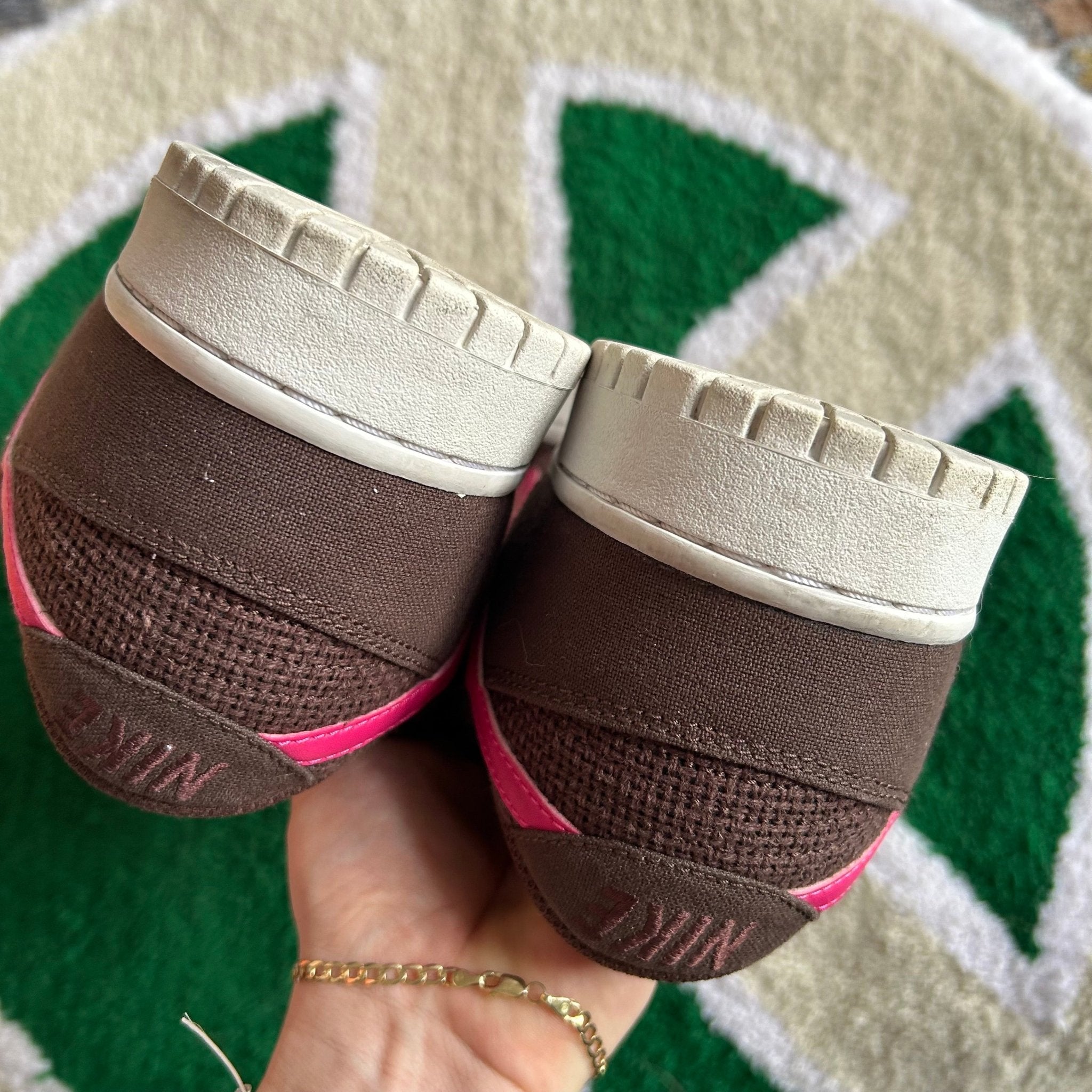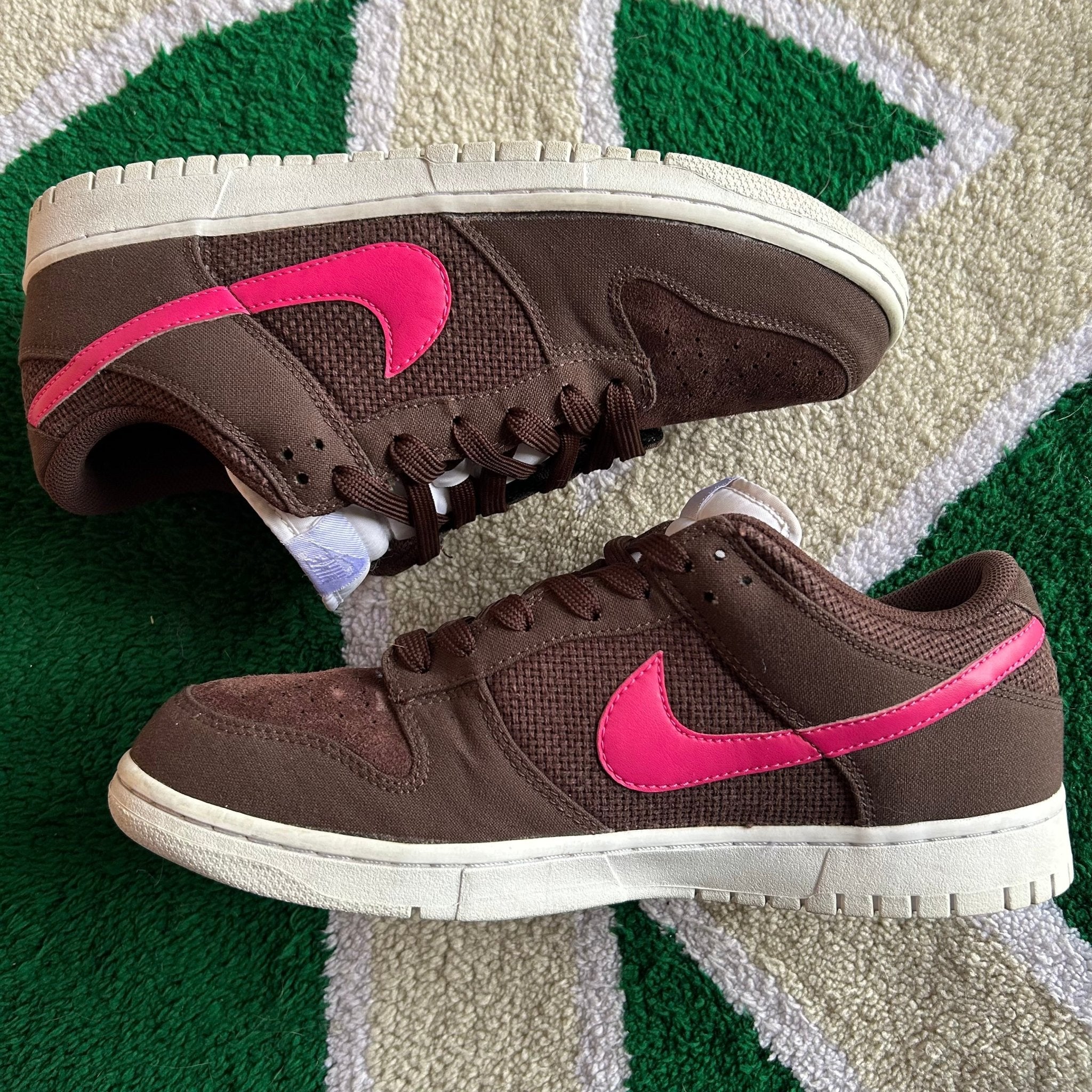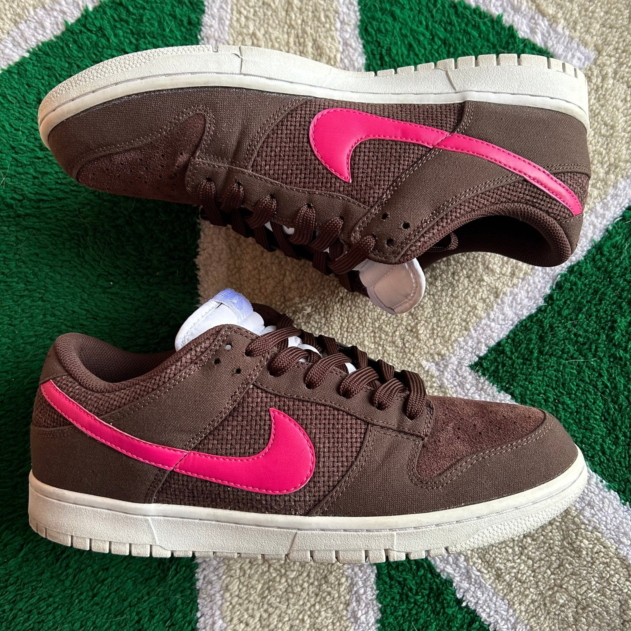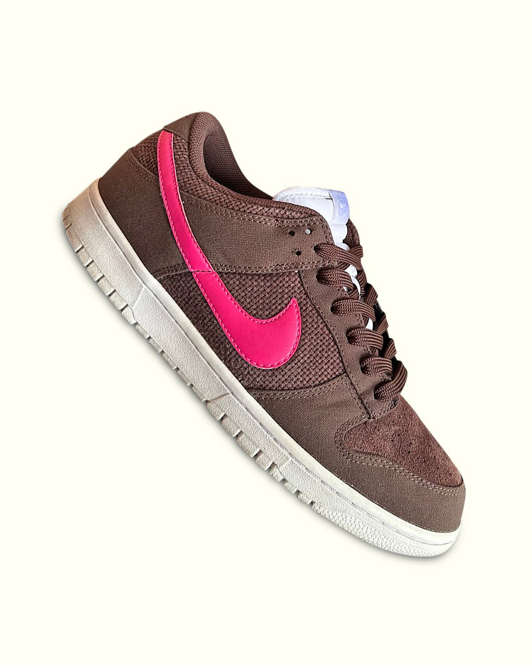 The Nike Dunk Low CL Brown Pink released in 2009 and is a rare lesser known Comfort Line pair. It features baroque brown canvas uppers, tweed paneling, and a suede toe box with a vivid pink Swoosh and a white tongue tag. Extremely rare in a size 12.