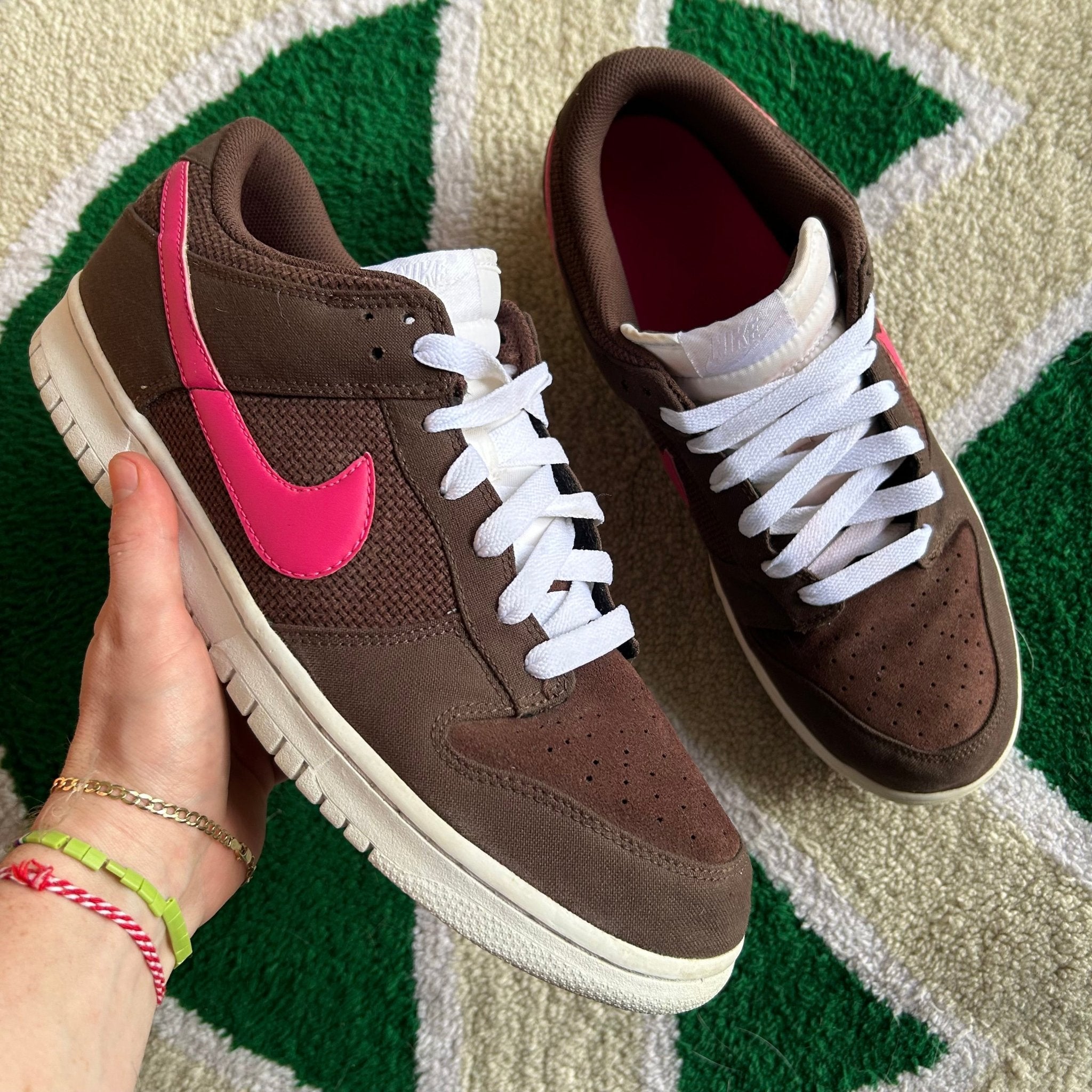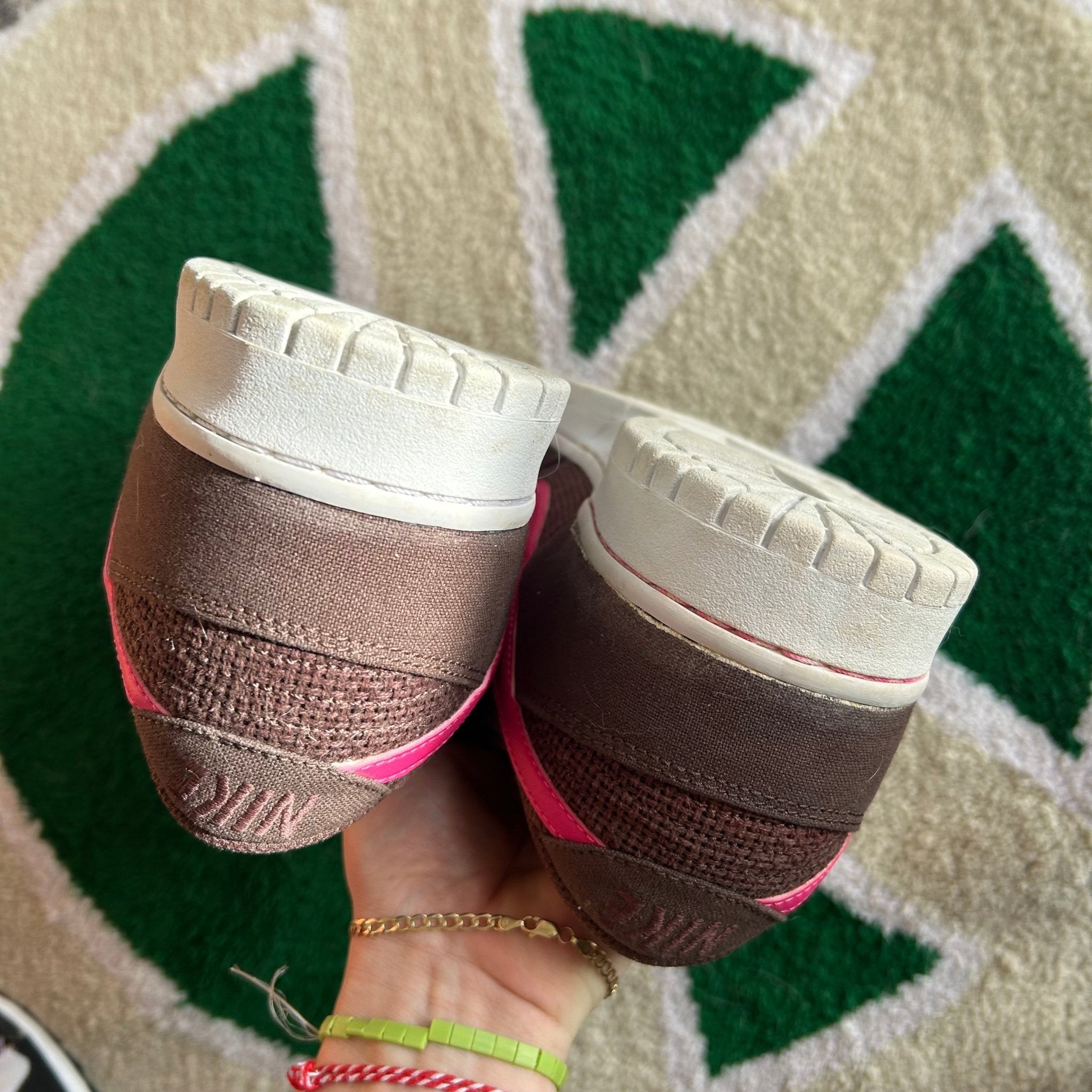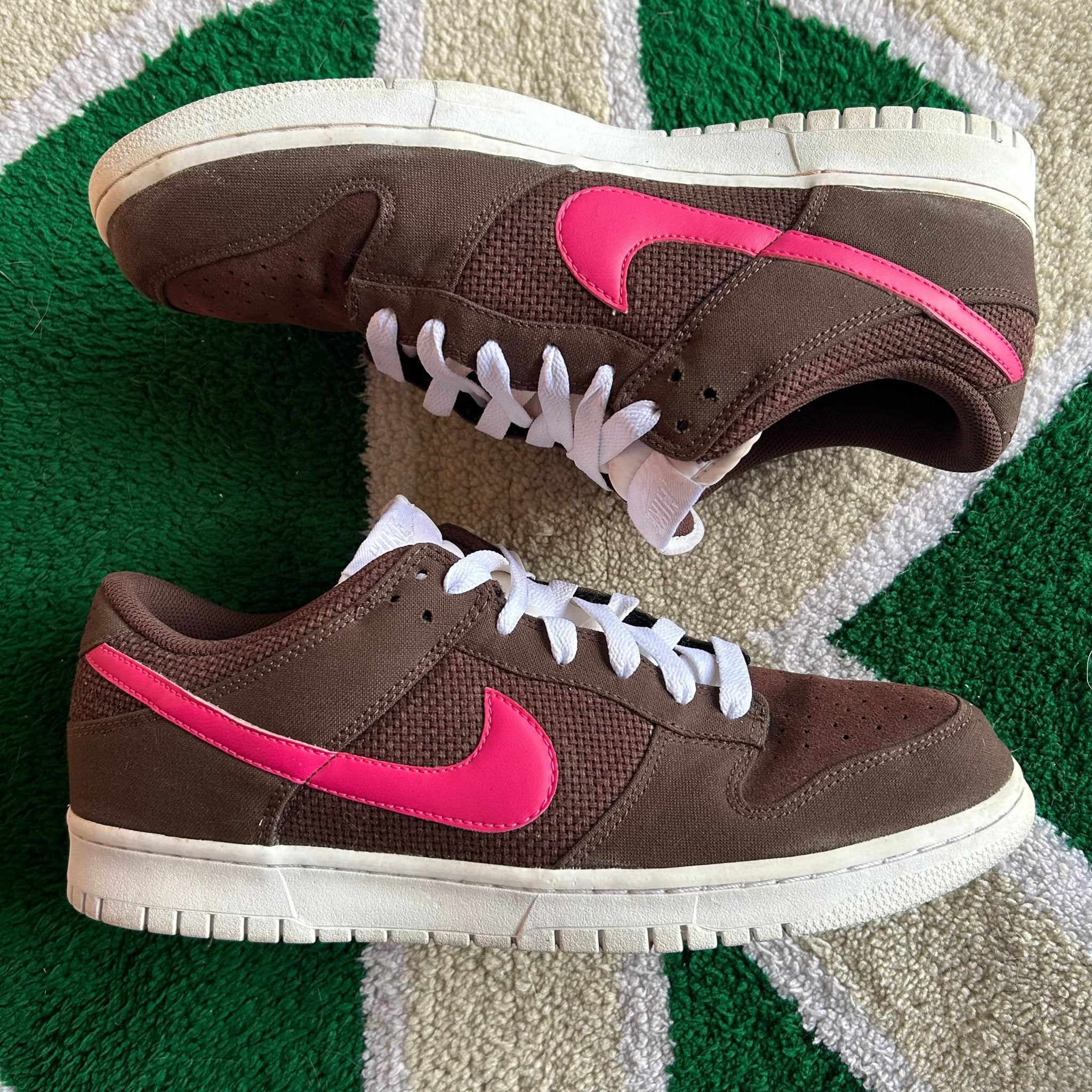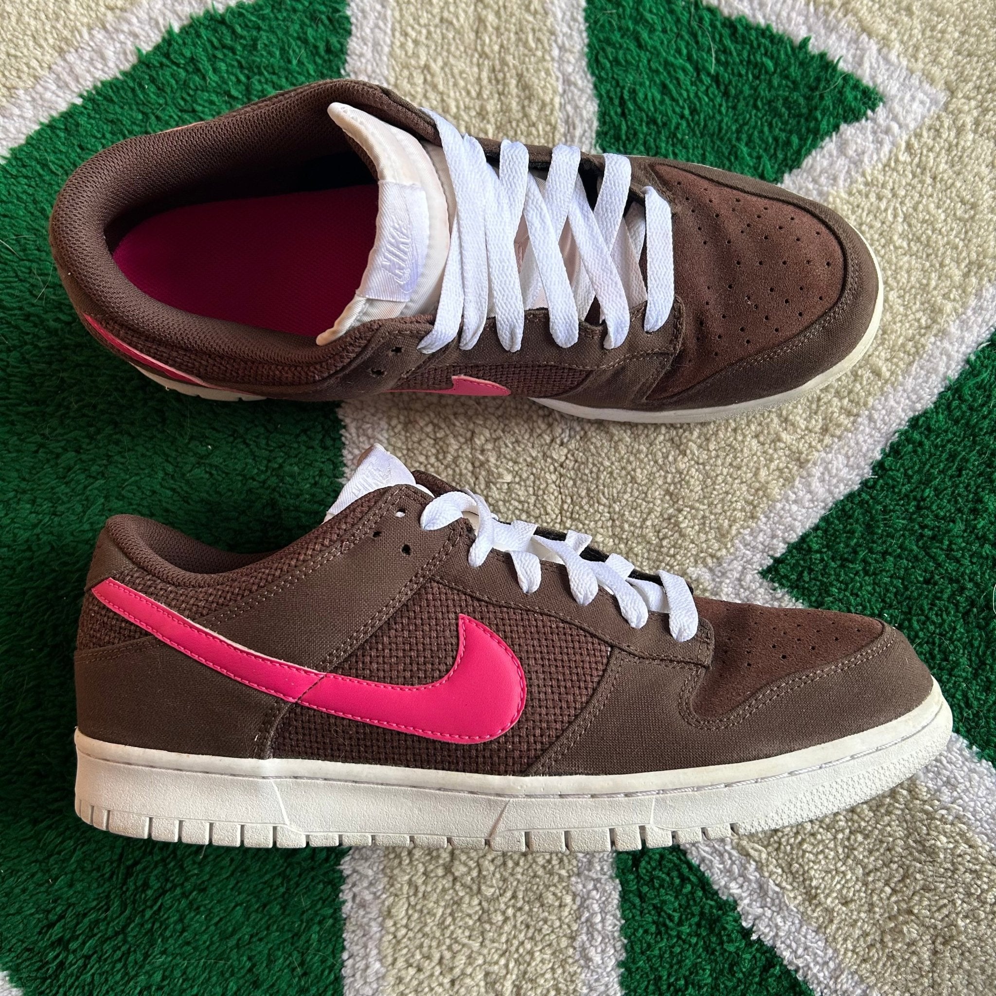 The Nike Dunk Low CL Brown Pink released in 2009 and is a rare lesser known Comfort Line pair. It features baroque brown canvas uppers, tweed paneling, and a suede toe box with a vivid pink Swoosh and a white tongue tag. Extremely rare in a size 12.