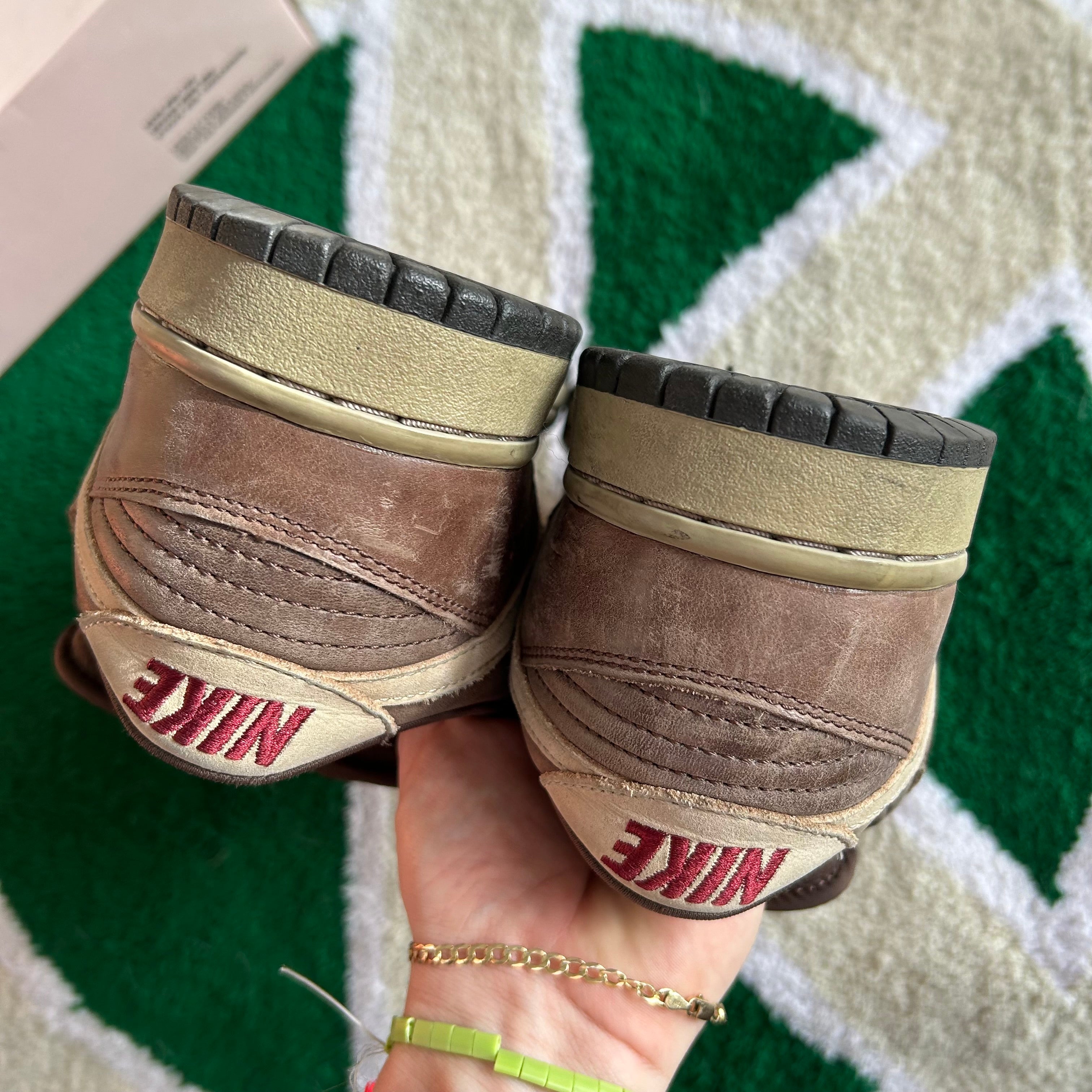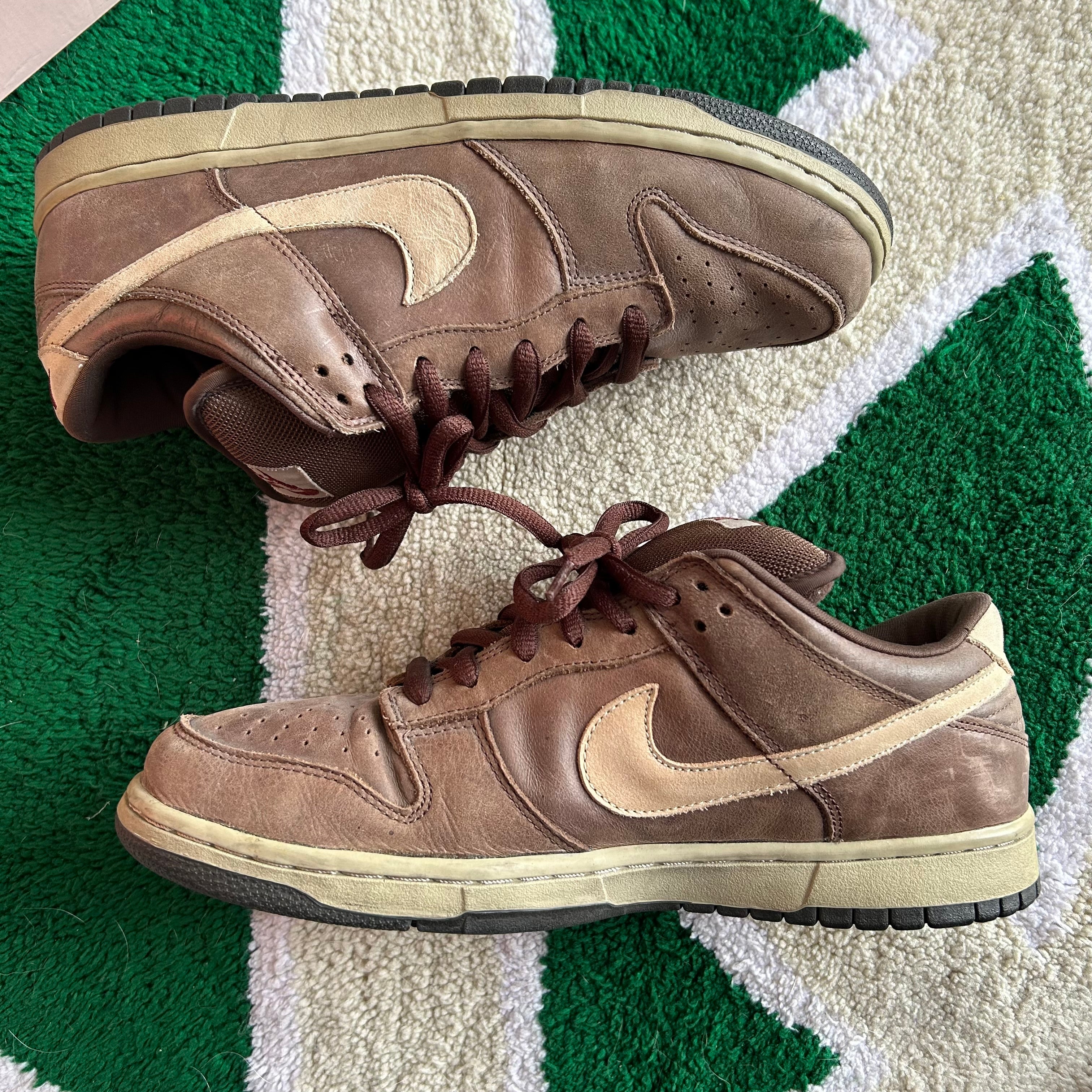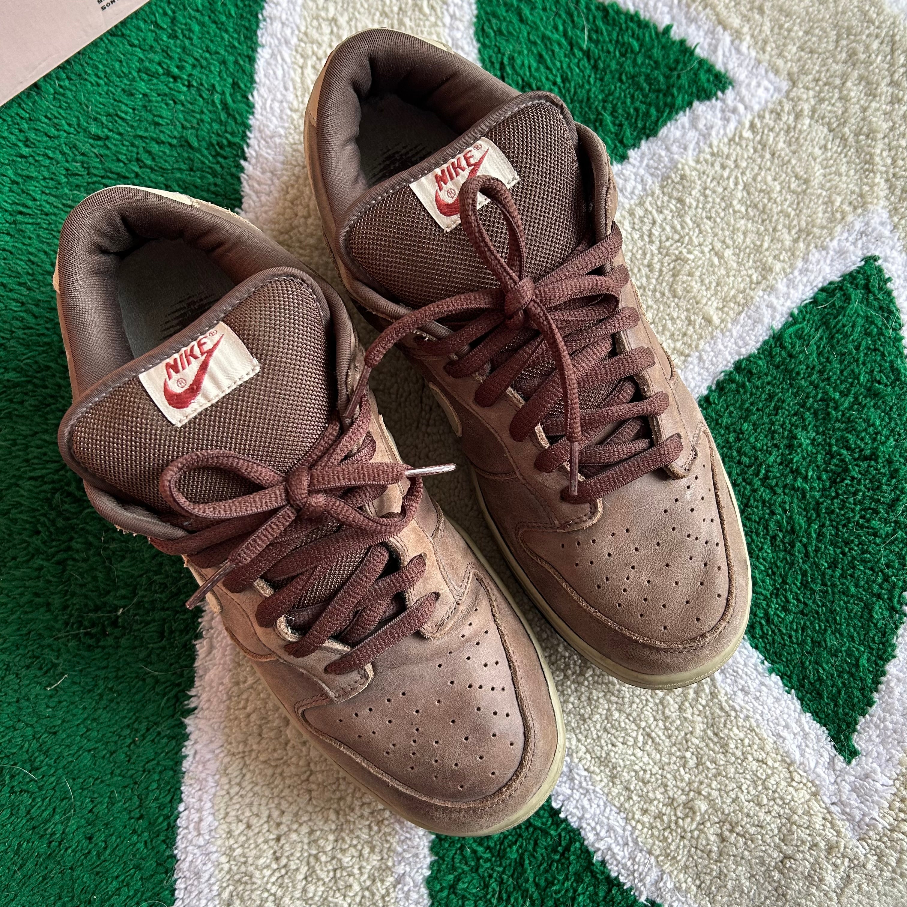 The 2004 Nike SB Dunk Low "Mocha" features an official colorway of Dark Mocha/Chino. Unlike the 2007 SB Dunk Low Pro "Mocha," this model was crafted with premium leather and released during the pink box SB era. Red accents add a pop of contrast to the rich mocha tones. Notably, this version doesn’t feature "SB" on the tongue tag, as it was released before Nike SB added the branding to every tag, making it a unique piece in the Dunk SB lineage.
