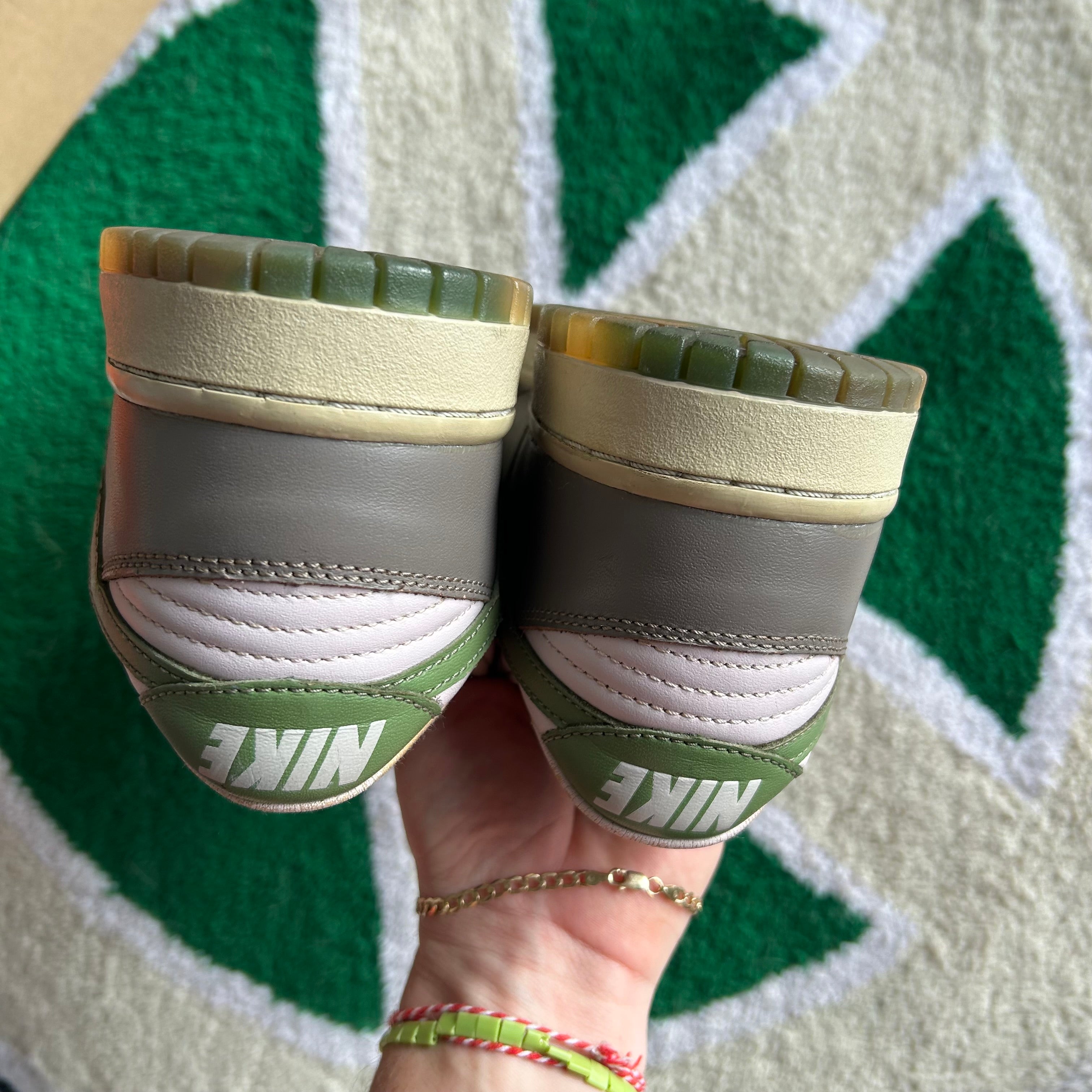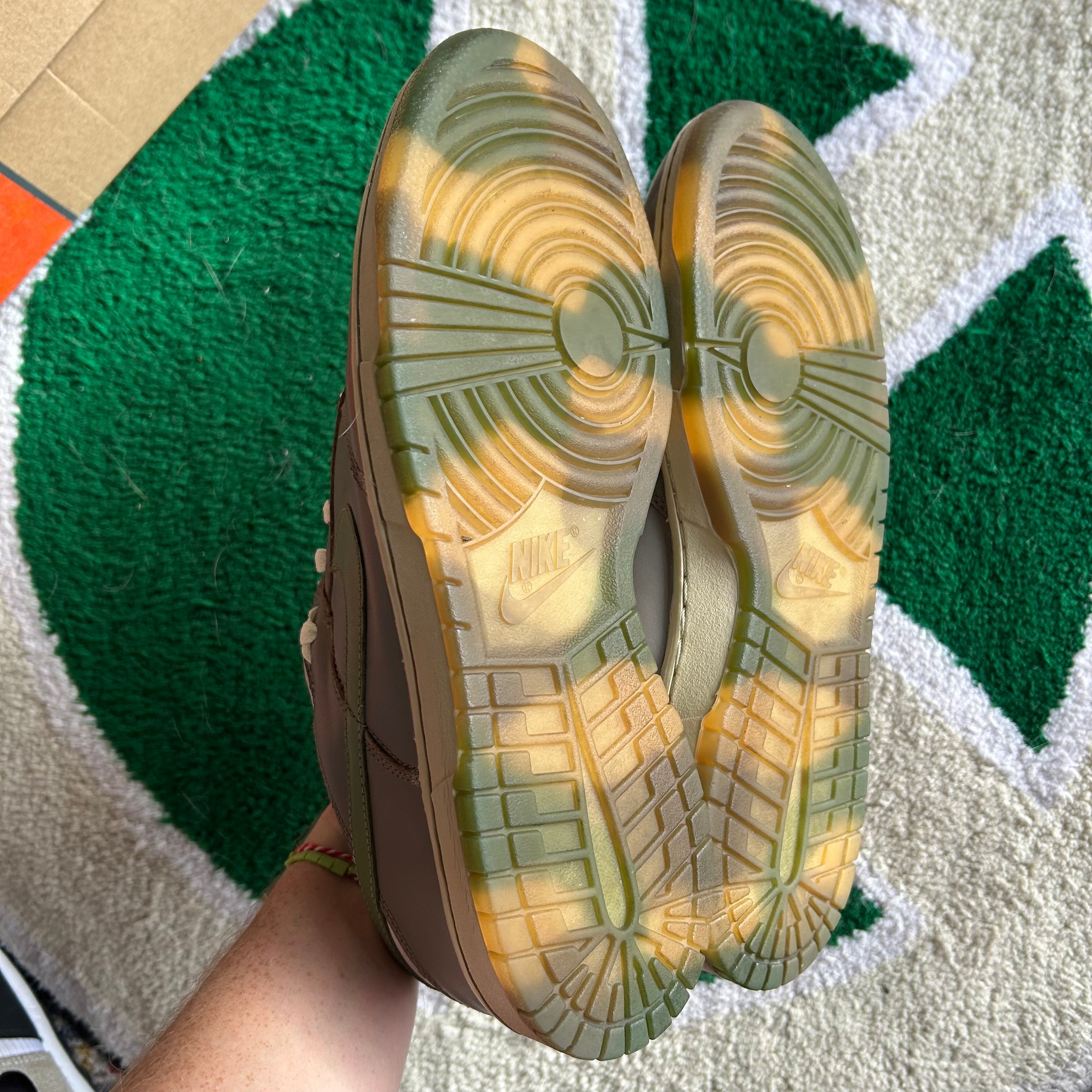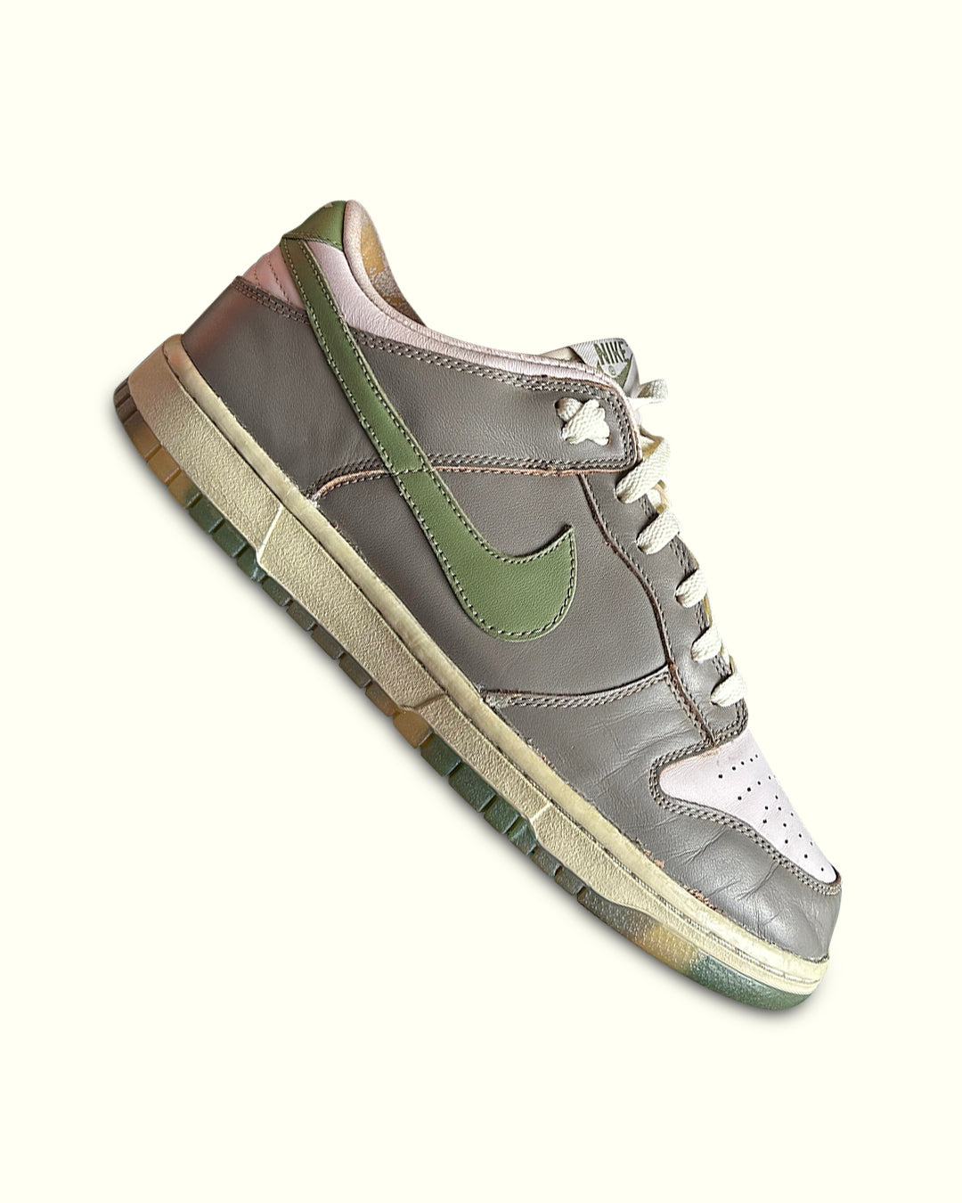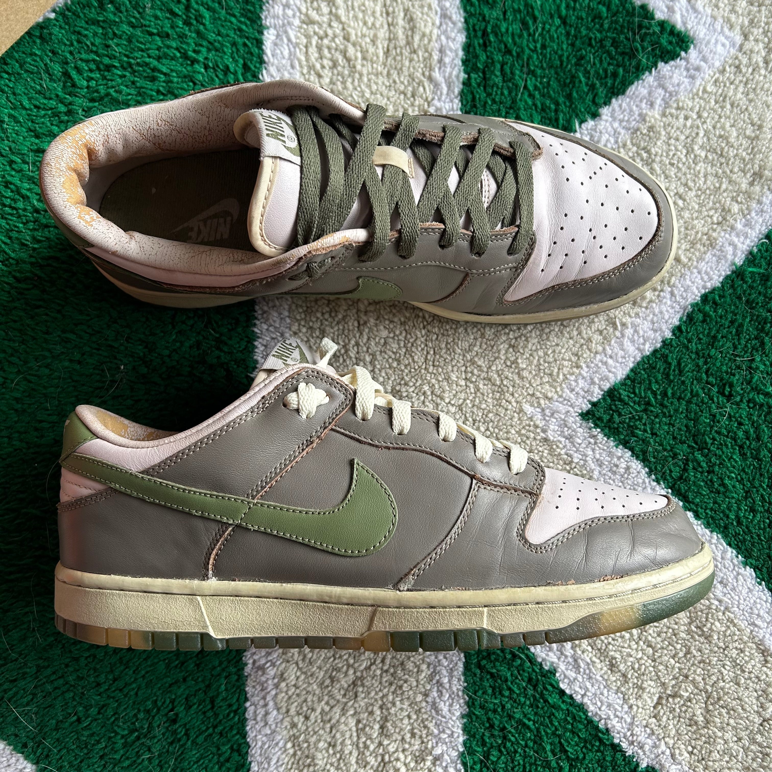 The Nike Dunk Low Army Olive released in 2005 and is an extremely rare pair with an army camo translucent sole, light grey leather uppers, and an olive green Swoosh and accents. A desirable pair for collectors due to its rarity.