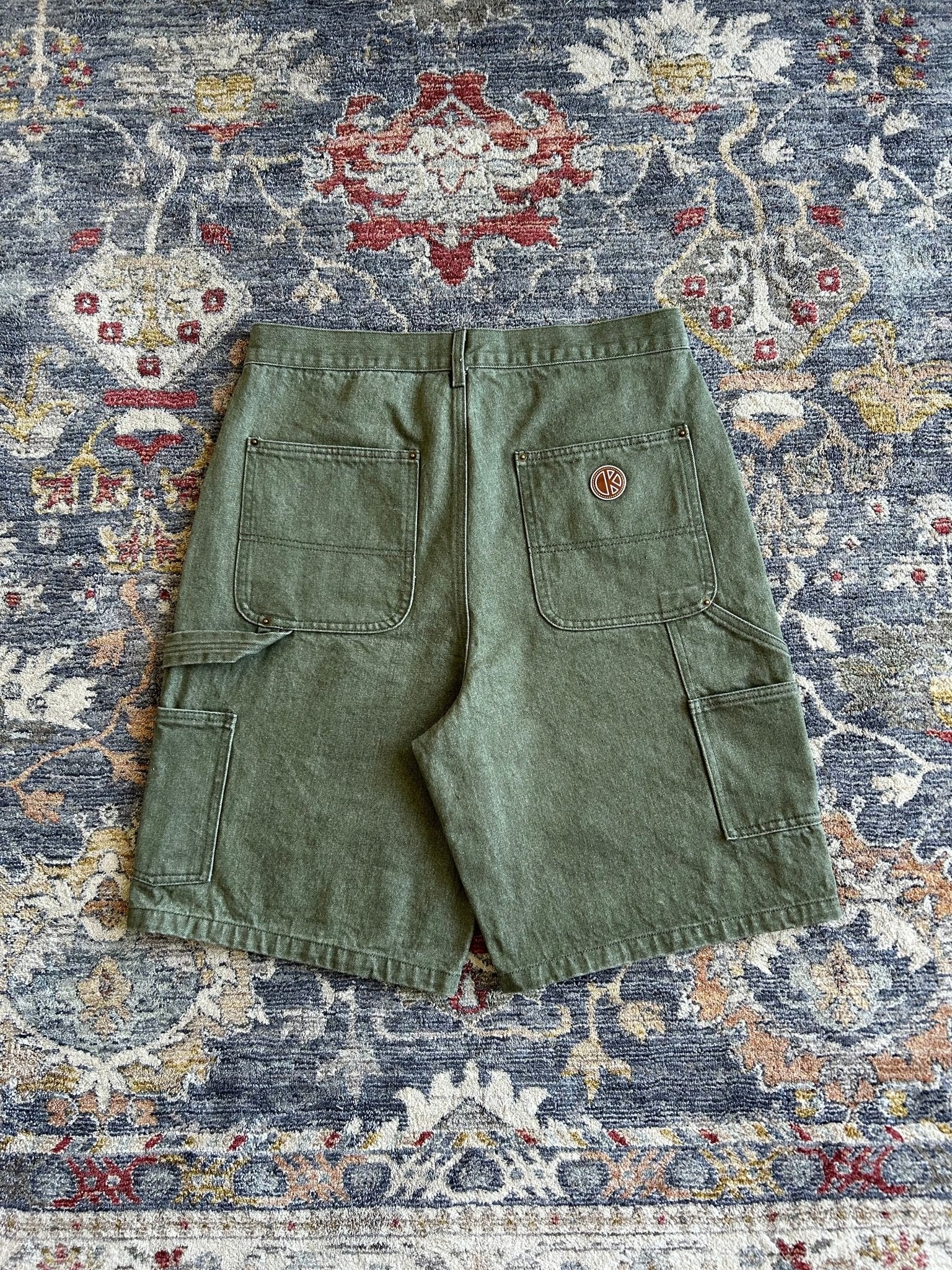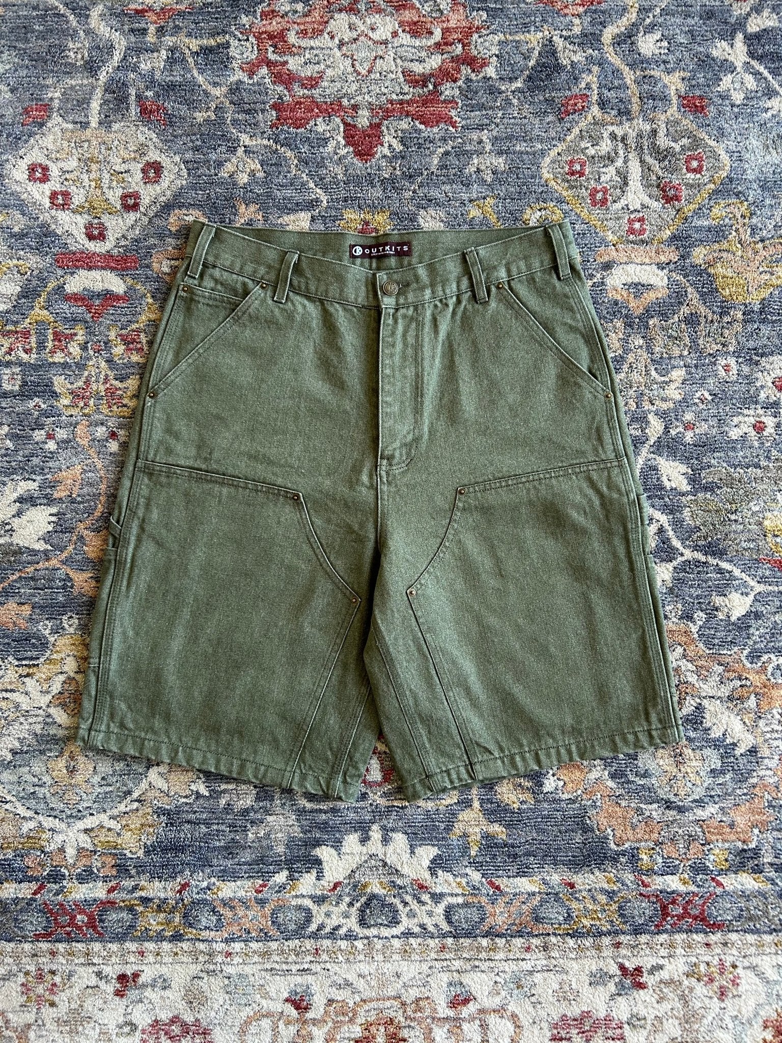 Our new Faded Olive colorway is made from 470 GSM heavy stonewashed denim and adorned with OUTKITS embellishments. Just like the original, they strike the perfect balance between baggy and fit.